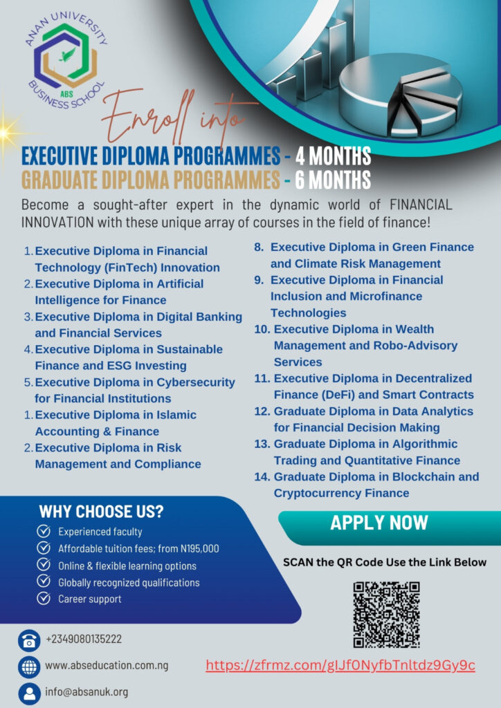 ANAN University Business School (ABS) is an innovative effort of the ANAN University Kwall, Nigeria, established as a non profit private university with a mission to provide professionals and researchers the modernity driving leading educational institutions in this 21st century world. The university is licensed by the National Universities Commission in Nigeria and is the making of the Association of National Accoutnants of Nigeria (ANAN) which is Africa’s leading body of professional accountants established in 1979 with the unique mandate of ‘advancing the science of accountancy’.